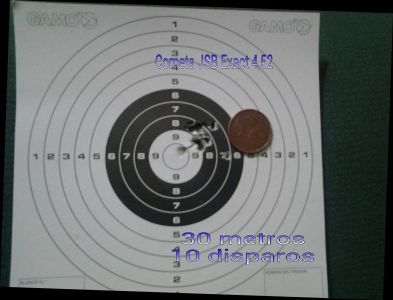 Debía estas agrupaciones de la Gamo CFR Whisper IGT A ver que os parecen estas de 10 tiros a 20 metros con apoyo delantero Con Cometa JSB Exact 4,52 20121216_193322.jpg Con Cometa JSB Exact Expres 4,52 20121216_190655.jpg No os pongo la agrupacion con HN fiel target trophy ya que esta unidad no agru...