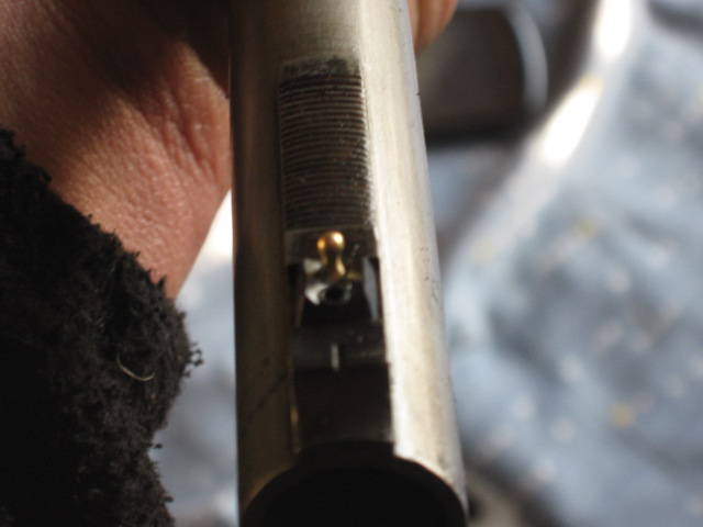 Lo solde con estaño.No me anime a meterle mucha temperatura a la recamara. Por eso tiene tanta superficie la pieza, para que no se desprenda asi nomas. El pavon se lo saque despues con cloruro de hierro, en las partes para soldar antes, obviamente. Tengo un pistolon asi, gris, no se oxida si no te d...