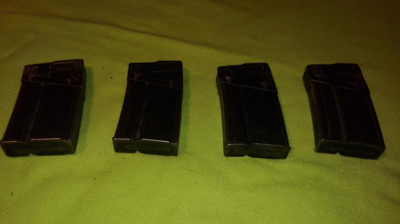 Vendo 4 cargadores de Cetme C. Necesitan de mantenimiento (ver fotos). Son de capacidad para 20 cartuchos. 25€Contactar para más info.