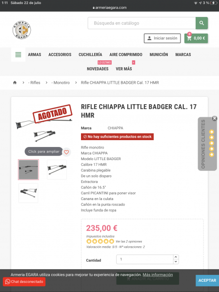 - Tema: Vendo 180€ Chiappa Little badger 17HMR