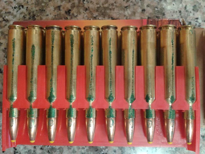 Con lana de acero de la mas fina (000) Te saldrá rápidamente. Yo también lo pasé con cartuchos 270W en una canana, que hasta me costó un montón sacarlos.