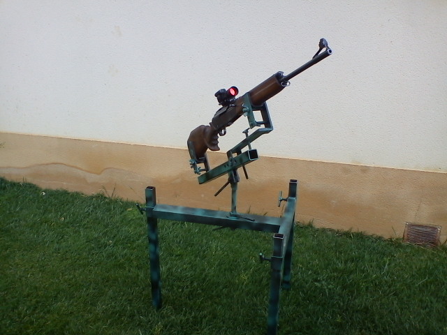 En cualquier desguace de coches, te puedes hacer con un gato y con un poco de ayuda y maña te puedes hacer un buen banco para poner el rifle a tiro, hace tiempo ya abrimos un post en el foro con este tipo de inventos. Te dejo una foto del mio para que te hagas una idea.