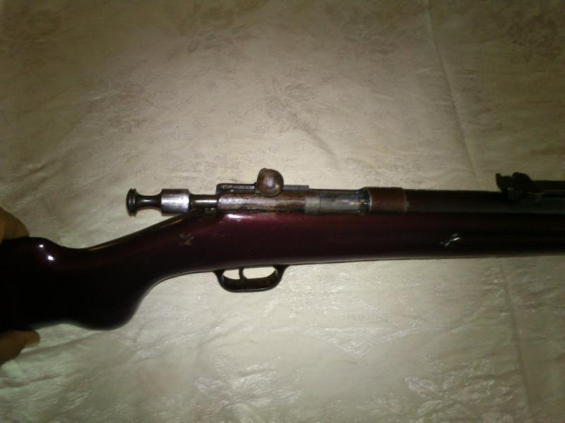 Amigo tienes toda la razon, ya que esta carabina se desarma con un tornillo que esta debajo de guardamanos y otro que esta debajo del cerrojo, el color de la culata no es la original, ya que con el paso del tiempo la han pintado. quite un poco la pintura y logre ver que tiene un color muy similar al de la carabina que muestra el colega enn el post anterior asi que estoy pensando que pueda ser un "Geco"