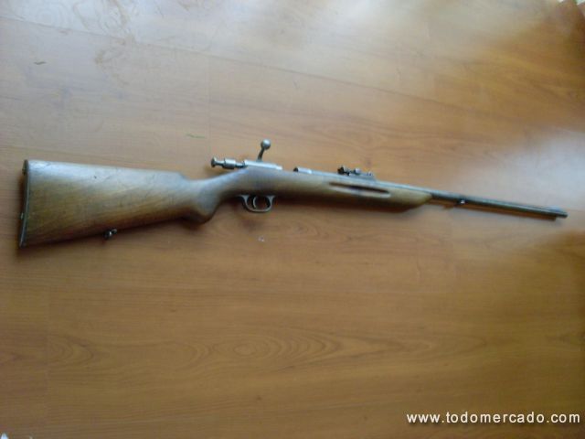 Independientemente de otras consideraciones,ya tratadas,me parece que esta carabina es o por lo menos se parece a una que comercializaba la marca"Geco",en calibre 22 lr;y que se podia desarmar el conjunto cierre cañon con un tornillo manual debajo del guardamanos.Saludos