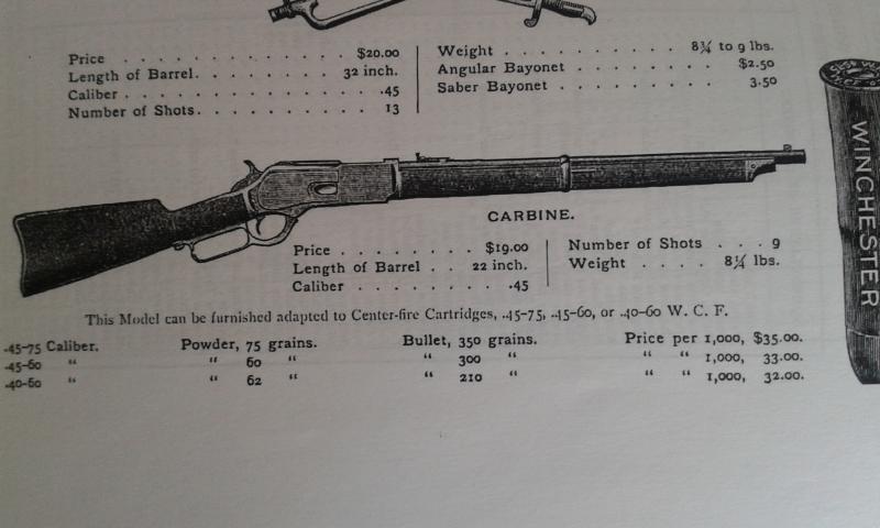 Tengo delante mio el Catalogo de 1887 de Winchester y parece clavada a la la Carabina del Modelo 1876 con alza modelo militar. Fabricada en calibres 45-75, 45-60 y 40-60.