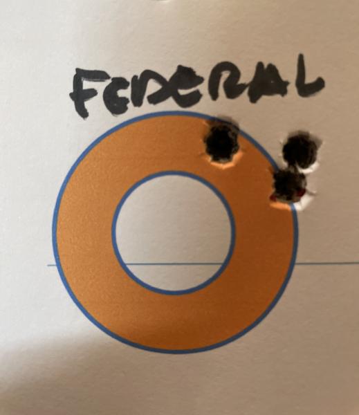 Moneda de 20 cts. la federal 50 grains y la sako punta plomo de 50 grains a la no despreciable velocidad de 938 m/s ta