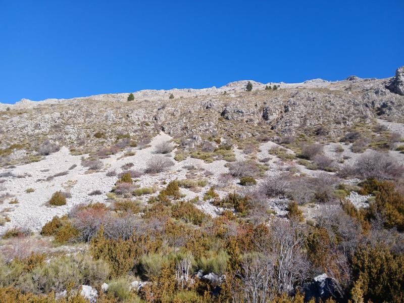 A las seis del día siguiente después de desayunar nos pusimos en marcha de nuevo, esa vez tocaba un monte más duro que el del día anterior, pero diferente en modo de ataque, las pistas llegaban hasta la línea de debajo de los pinos y de allí subíamos hasta salir de la vegetación para establecer nuestro punto de observación.