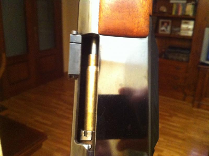 Cargo un casquillo. Meto hasta el fondo la baqueta por la boca del cañón. Abriendo el cerrojo, me aseguro de que haya entrado en el casquillo. Vuelvo a cerrar.