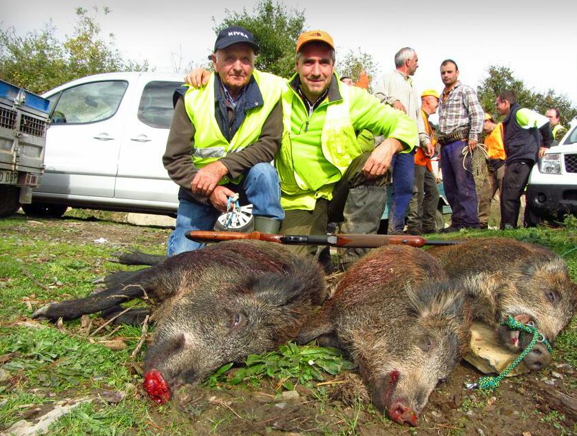 De la temporada pasada,el cazador de la derecha.Triplete de jabalíes en zona sucia con BAR II Battue en 30.06.El rifle no se ha encasquillado nunca tras 15 años de uso.