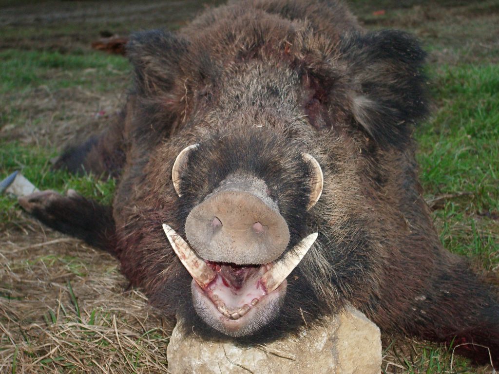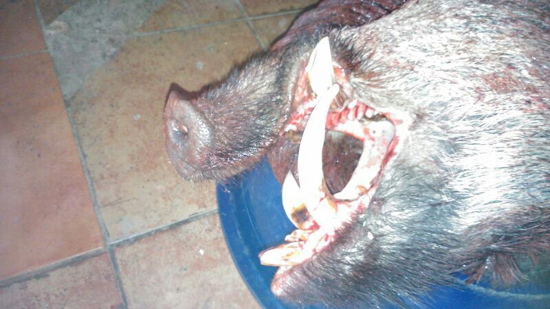 El jabalí de sierra más grande que he visto (140 kg y 26 cm de colmillo ) esta en mi chimenea lo abatió mi padre.