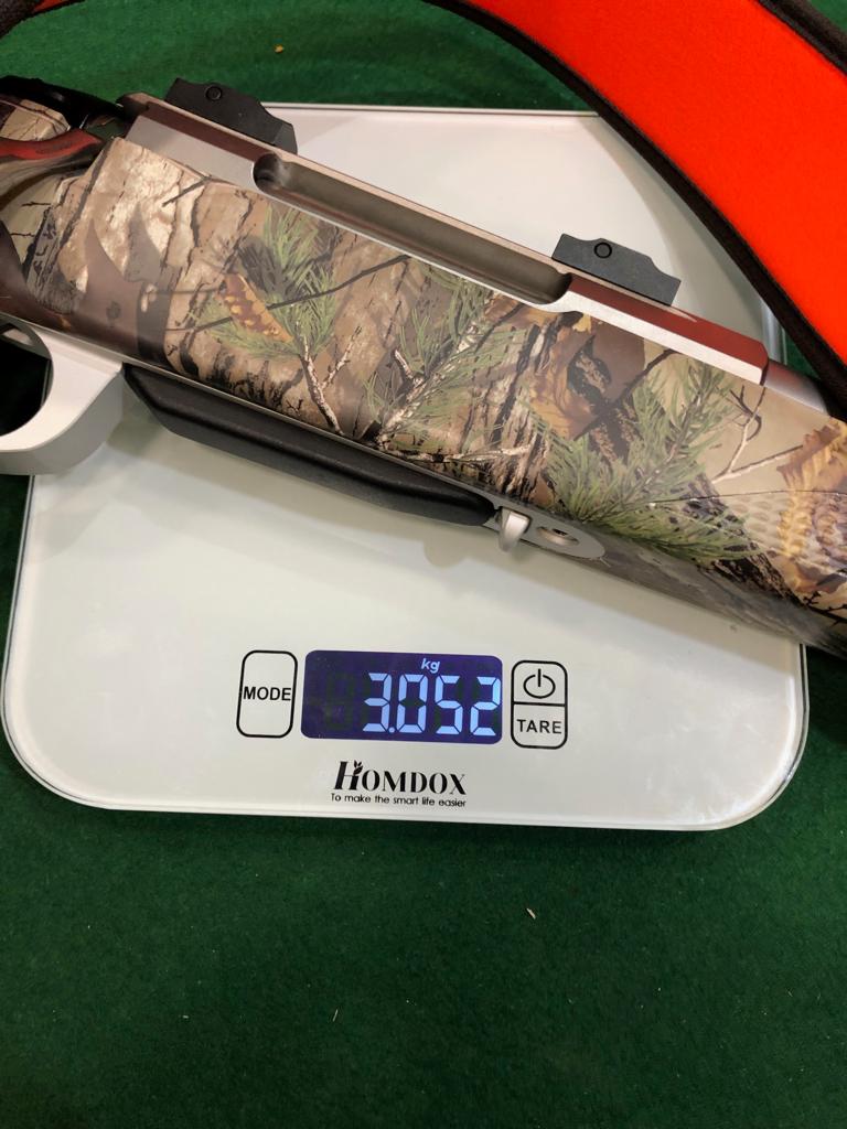 Ya está pesado con el nuevo guarda gatillo y la correa, más adelante le pondré las anillas que no meten ruido.