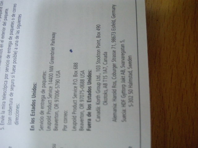 PD. tengo un leupold de batida y creo recordar que para la garantia de por vida, no es necesario mandarlo a eeuu, creo que tienen sede en alemania, aunque de esto no estoy muy seguro pues lo compre hace mucho y nunca he tenido que usar la garantia