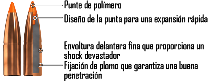 Nosler Accubond 165 que expande a partir de 550m/s o la misma de 168 Long Range, que expande a partir de 400m/s.