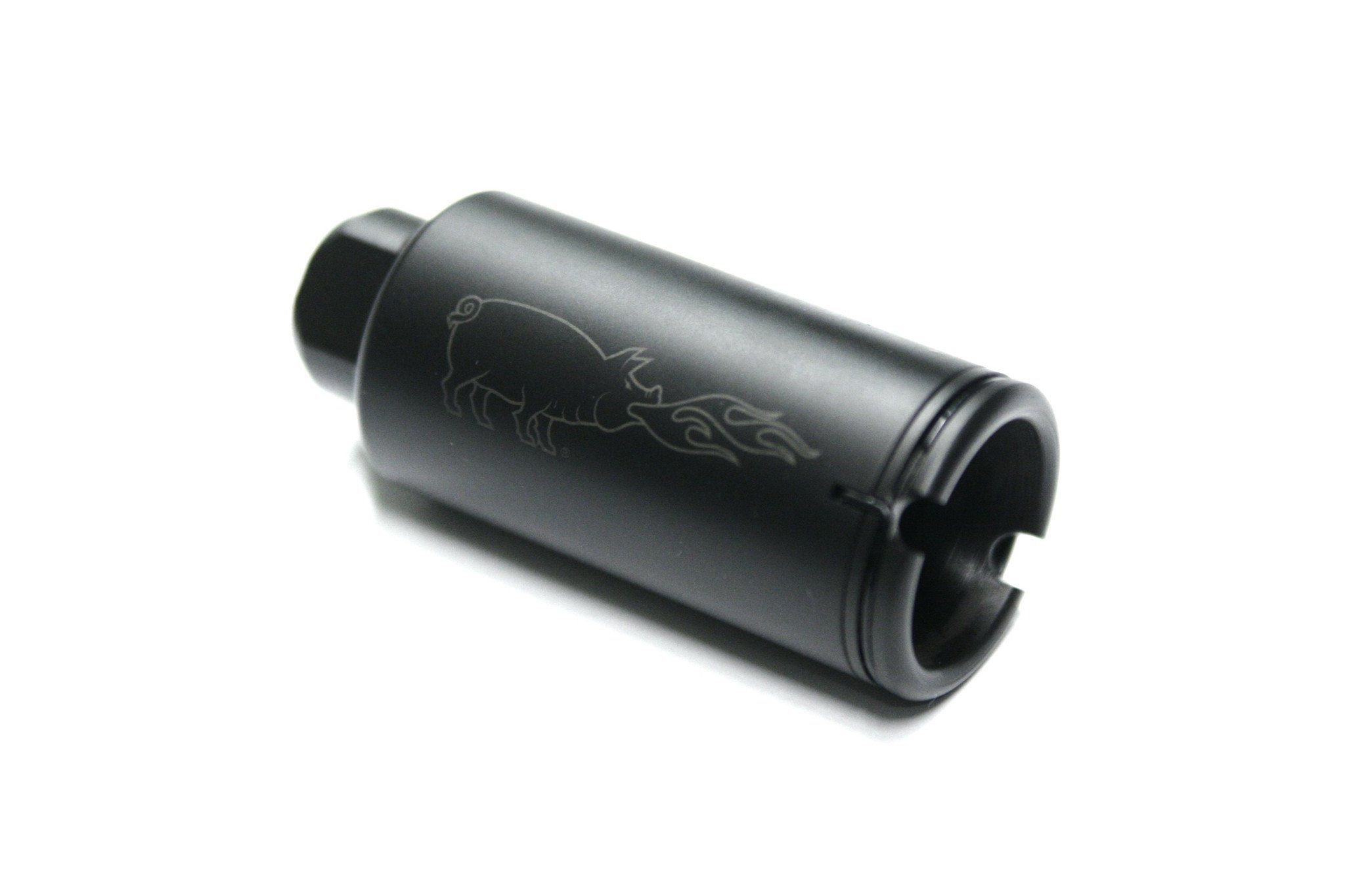 A ver que me explique, el freno de boca hace más ruido al salir los gases por los "agujeros", entonces, si le añades un supresor al final poco a muy poco haces y si utilizas una bala subsónica ¿para qué vas a poner un freno de boca?