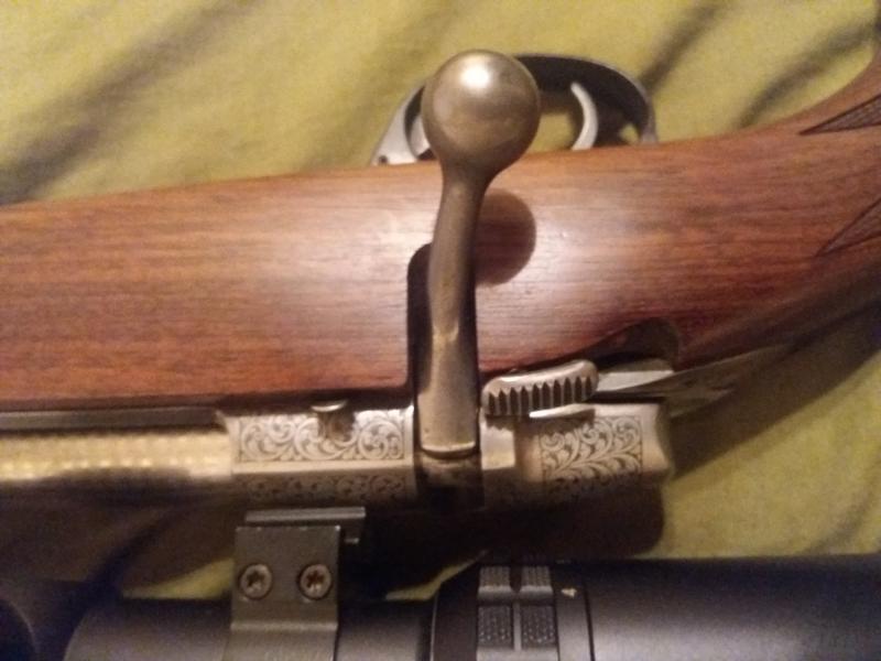 Desconozco si mi modelo es el 1900. Pero adjunto fotos de culata y mecanismo de seguro y cerrojo. Repito que mío es en 30-06. Los arabescos pueden despistar pero creo q aparte de embellecer se aprecia la similitud.