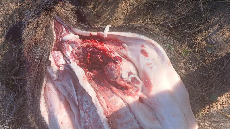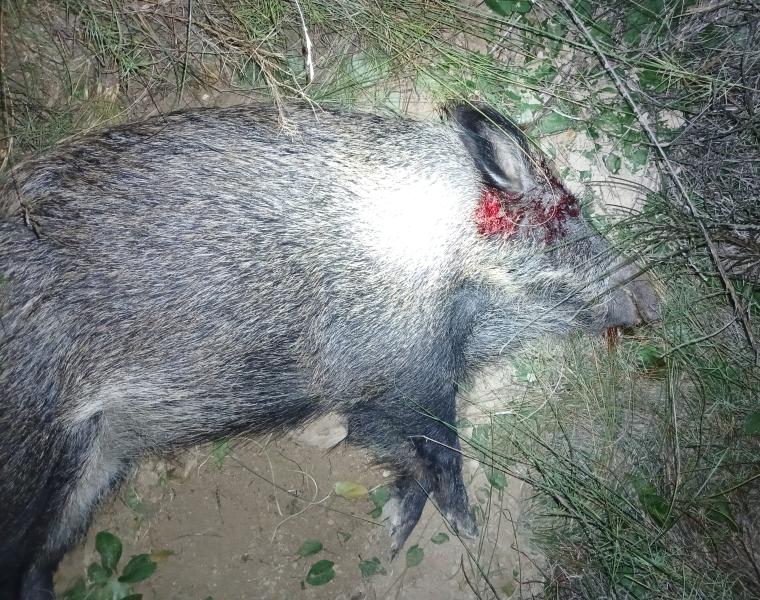 La otra noche pensando que era un guarro porque estaba solo y daba la talla tumbe una gorrina de sus buenos 90/100 kg con una KS 123 distancia media de 150 mt pero no es por donde le entro es que la derrumbó sobre su sombra... El tiro engaña...