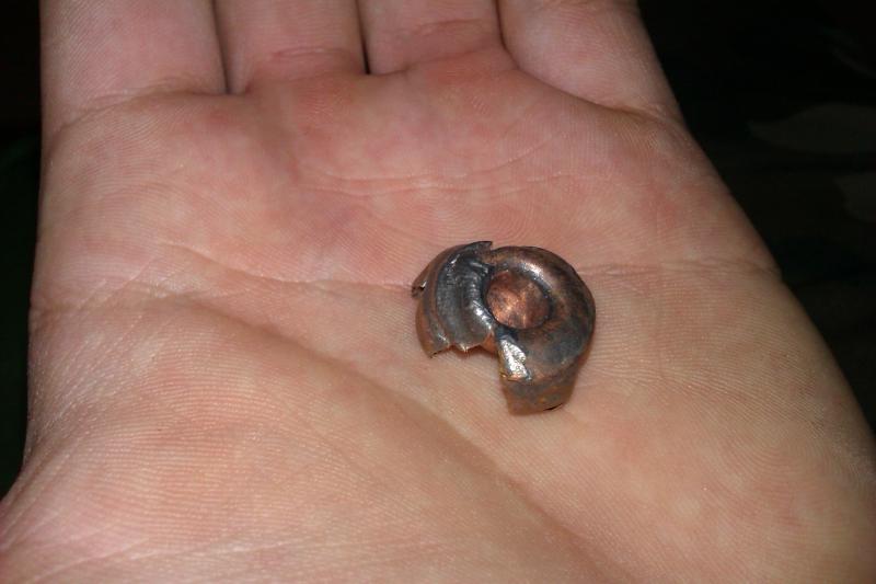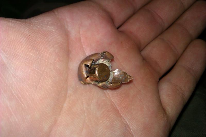 Exactamente es la bala de la tercera foto y he aqui lo que pude recuperar despues de que traspasara al pino...