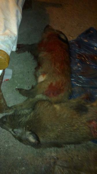los cace a la espera,entraron en un rastrojo de maiz,la madre y los dos marranetes(eran machos los dos),los tire a unos 100 metros,el calibre creo que es potente de cojones y lo puse a examen,espere a poder tirar con la intencion de matar dos de un tiro,el primero se desplomo y el de atras le agarro el jamon y lo desplomo tambien,eso si gruñia que no veas,a los 5 segundos se levanto y con las patas delanteras trataba de huir y lo remate con otro disparo a la paleta que salio por el cuello.saludos....