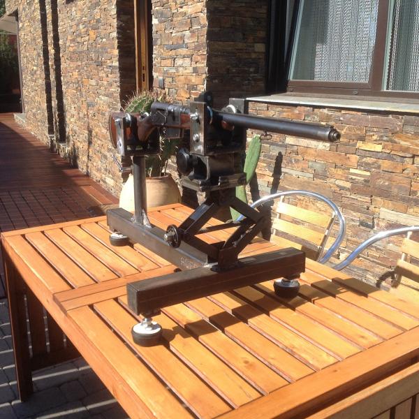 Robertocazaruta escribió:Éste es el que tengo yo, lo hice partiendo de un gato de coche (escogiendo uno que venía muy ajustado, de un Alfa Romeo para ser exactos), con unos cuantos tubos, recortes de chapa gruesa, varilla roscada, un poco de goma y unos pomos de plástico. Al final 11kg de banco de tiro tremendamente estable por poco más de 25€ y unas cuantas horas de bricolaje.