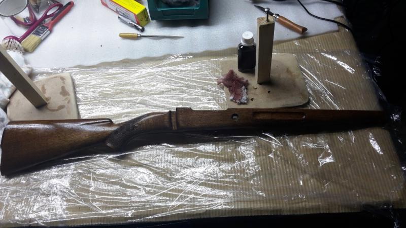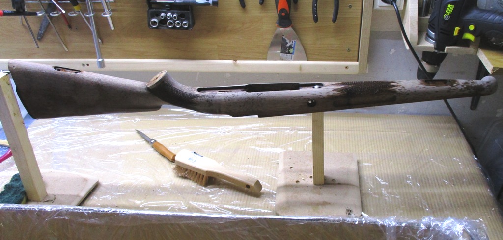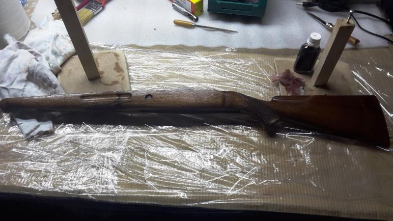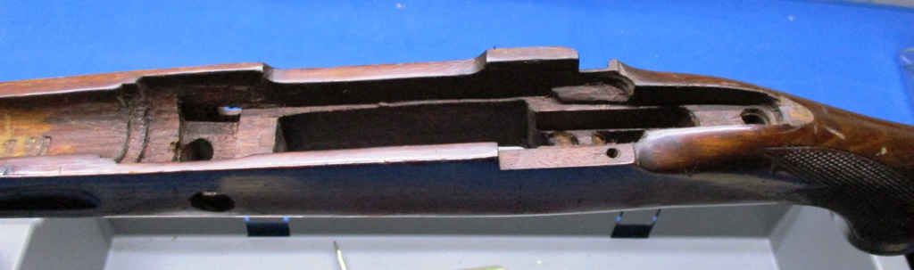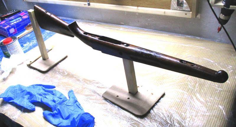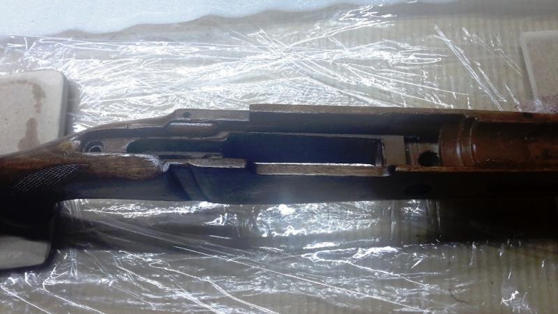 Por último y para finalizar el trabajo de esta tarde de viernes dejamos la madera y la acción del rifle listas para recibir la resina, pero eso será mañana sábado, ahora simplemente: