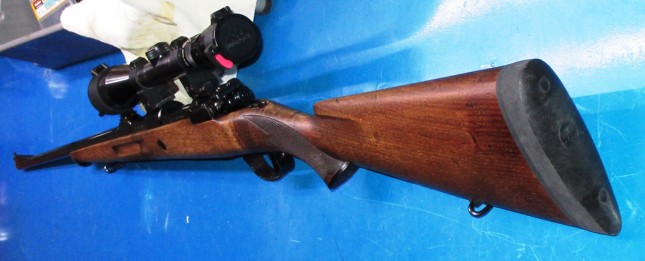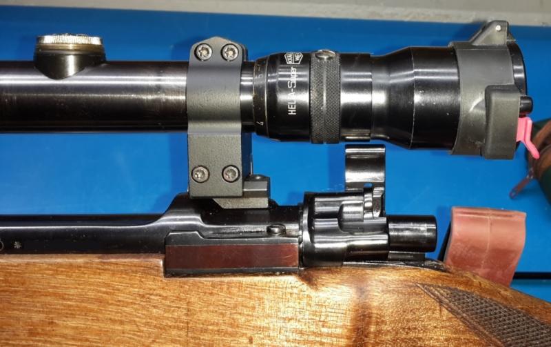 He tenido que modificar también la base delantera ya que la distancia entre anillas me quedaba algo larga y no dejaba margen de recorrido en el montaje, he cortado la base delantera limando el corte y re-pavonado, luego le he dado la vuelta de modo que el canal de encaje transversal de la base quedaba más atrás, ahora la montura no sobresale en voladizo por delante del puente delantero (Ver foto antes del corte y después).