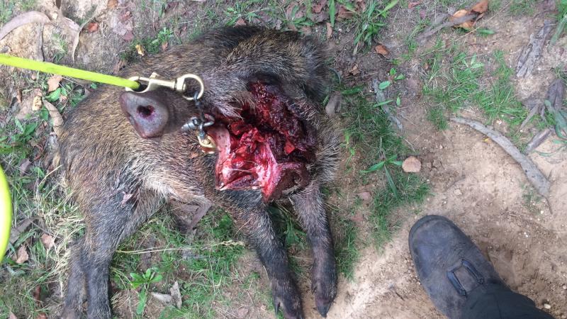 Pues menos mal que le tiras con lo que algunos compañeros les gusta decir que es una"" carabina"". Si le tiras con algún misil balístico que tiran ellos, no cojes ni los colmillos ni los jamones delanteros.