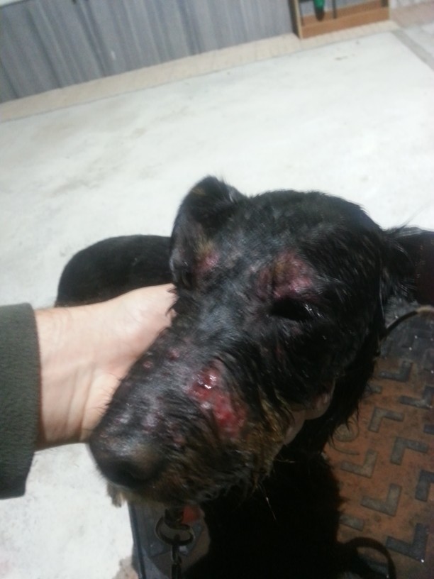provocando esto su caída sobre sus huellas y al poco salen las dos trabajadoras buscando su reconpensa. Después llegados a casa limpieza de hojos y desinfección de heridas y a dormir calentitas que se lo han ganado.No es mas cazador el que mas caza si no el que mas la disfruta.