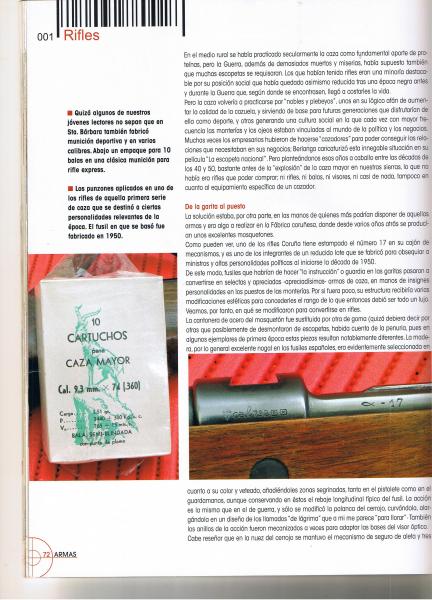 Entiendo que por el número será el 174 de esa serie. por qué no pone nada más. Estoy intentando buscar información en internet pero no encuentro nada. Si algúno sabe de algún enlace o artículo o algo lo agradecería. Soy bastante curioso y cuando adquiero algún cacharro me gusta tener toda la información posible. A ver a la tarde si tengo un rato y os pongo algunas fotos de la munición que venía con el fusil. Es curioso.