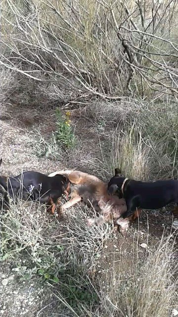 Hay dias que es mejor no salir!! Asi empezamos la mañana, salieron todos los perros pero el zorro no dio la cara y por la tarde otro tanto de lo mismo, cuatro horas en la zorrera sin salir y pensando que el lunes tocaria sacarlas con la retroexcavadora al final tuvimos suerte y salieron ya denoche y con sintomas de combate serio. Esta caza tiene dias de todos