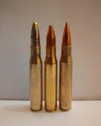 Como he estado por el pueblo enredando, he sacado un foto para que te hagas una idea del tema del cargador del Voere. Te pongo una foto de dos balas de recarga y otra comercial, para que veas como está el asunto. Las tres caben en el cargador del Voere.