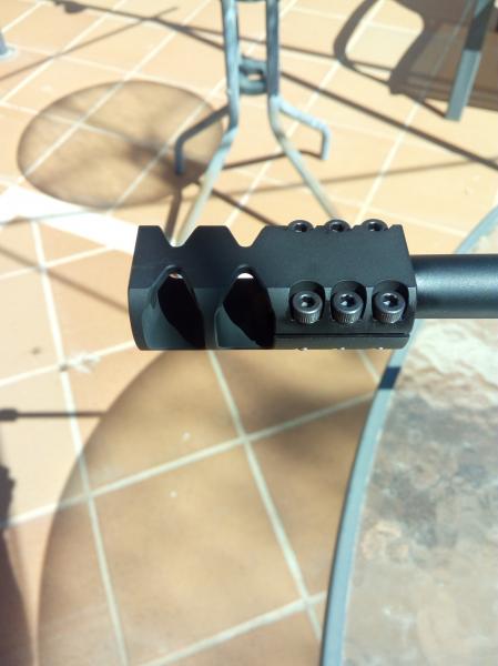 este es el freno de boca colocado en el rifle.