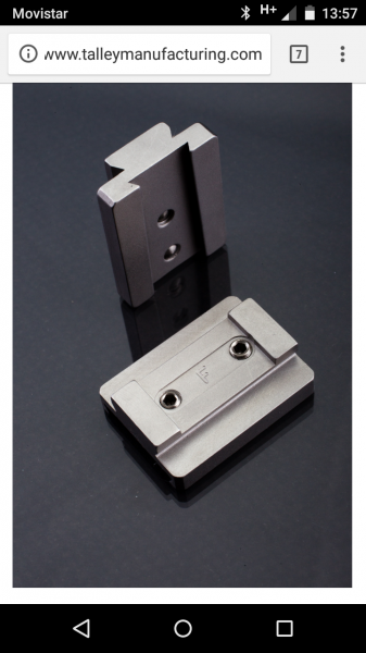 Lo de las monturas es un dolor, la verdad. Parece q las optilock son muy buenas pero es cierto q deben ser las más pesadas. Las Talley pesan sobre 5oz me han dicho pero tendría q pedirlas a USA. No es mucho problema y hasta el lunes (q creo q aún podría modificar el pedido) tendría tiempo. Me parecen interesantes por ser desmontables y más ligeras pero no sé muy bien cómo van y me parece q mi armero no las ha montado nunca pq no me da información. Tampoco sé si esos tornillos q se ven en la foto sirven para apretar, para poner las anillas como en las optilock o para atornillar en el cerrojo previo taladro, en cuyo caso no me interesaría.