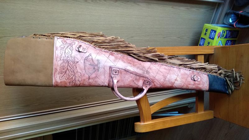 Es un scabbard modificado ya que en España tenemos que llevar la culata tapada también no vaya a ser que alguien se sienta intimidado. Así que le hice un añadido y queda bastante bien.