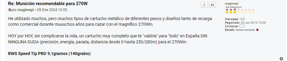 Sigo dándole vueltas a tu comentario ...EJEM....especialmente después de haber leido otro tuyo de enero de 2024 (hace cuatro días) en el que decías que el 270w es un calibre para todo en España.....entonces el 8x68 es el puto amo....o también vale el 270w para cazar todo en España, o solamente es para otros menesteres??...acláranoslo por favor....ejem...