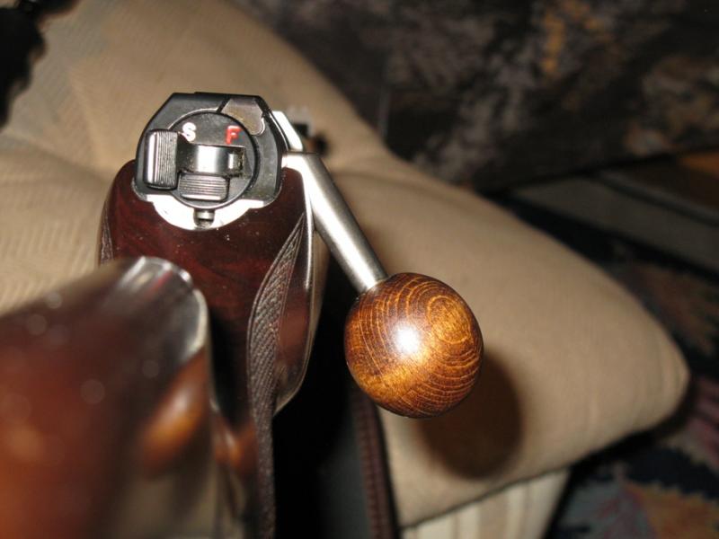 Te ha quedado bastante curiosa esa maneta en madera. la verdad es que debe de ganar en comodidad y facilidad de manejo la palanca, y a la vez en rapidez ez a la hora de repetir tiro.