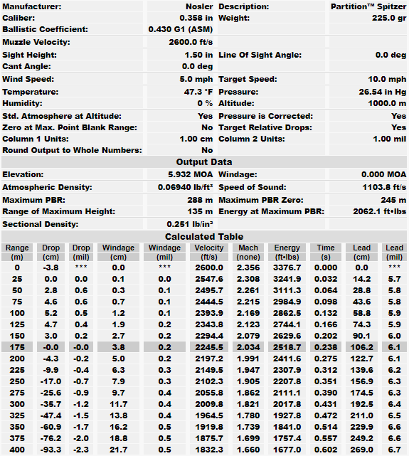 Yo con la recarga hago lo mismo o mas que la tan cacareada <Hornady > . Pero , siempre hay un pero,esas velocidades las consigues con el proyectil de 200 grains , que tiene la misma DS que un garbanzo y esa supuesta velocidad te la comen los metros que mete miedo , tiros cerca y nada mas ,pues eso un cagarro El proyectil mas versatil para el whelen es el de 225 grains nosler accubond , vuela muy bien y su DS y CB es alto y mantiene la velocidad y energia.