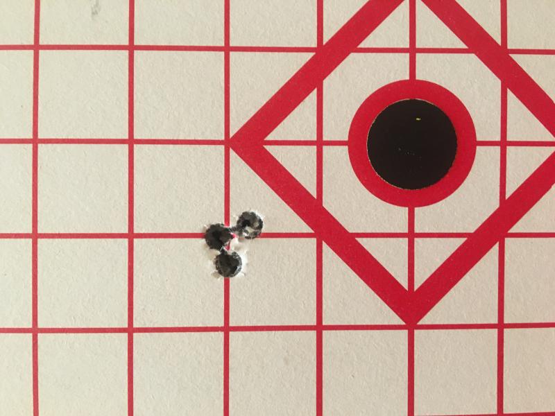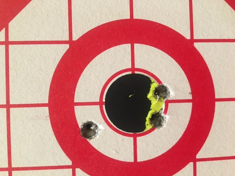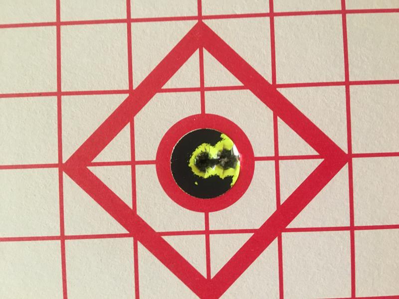Adjunto 2 fotos. Una es de 3 impactos seguidos y un cuarto fuera de la agrupación con el cañón muy caliente.