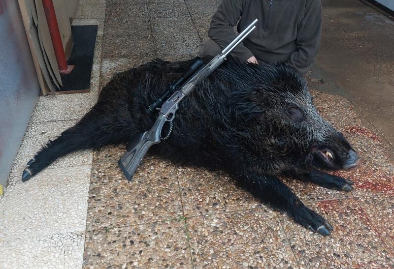 Bonito jabalí con el savage 99....un precioso lance y la eficacia del 308w incuestionable.