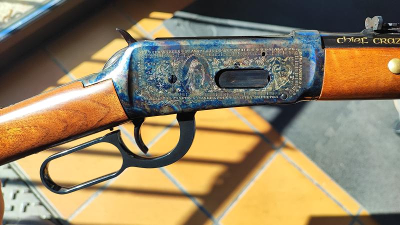 Es un Winchester 1894 Chief Crazy Horse, fabricado en 1982 y calibre 38-55 Win.