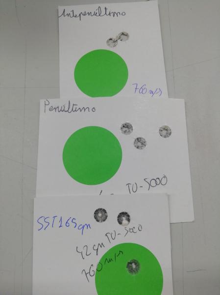 De arriba a abajo los últimos siete disparos a 100m antes de decidir que estaba centrado (Antepenúltimo, penúltimo y último).