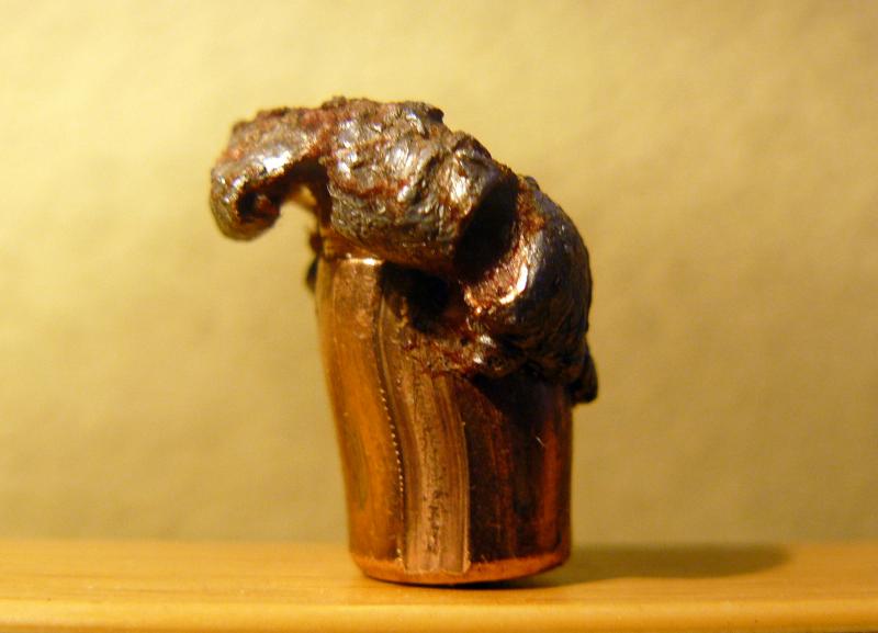 Pues así queda una bala del 9'3x62 de 250 gr. de doble núcleo con camisa soldada, Swift A-frame, en disparo de rececho.