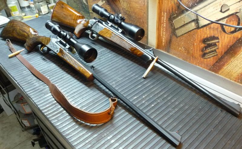 Bién pues si los vamos a enseñar, os muestro los mios de los que estoy sumamente contento. El R8, es con 65 cm. de cañón, en calibre 375H&H, utilizo desde siempre munición recargada, punta de 250 granos Sierra. El K95, también con 65 cm. de cañón, calibre 257 Wtby. M. punta Nosler Ballistic Tip Spitzer de 115 granos, siempre recargado.