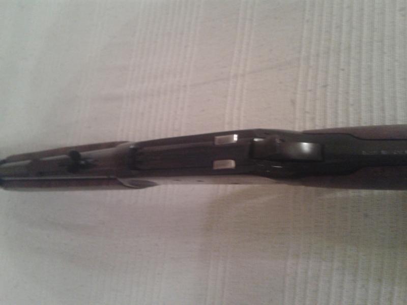 34 cm de cañón cal 44-40.Fue un regalo a un oficial de caballería realizado (mejorado) en maderas y pavones por un armero militar anónimo. La verdad no he visto ninguno mas así de corto y desconozco más datos del mismo, ya que mi suegro lo recibió de un compañero también oficial de Artillería, como regalo.sólo lo he disparado en dos ocasiones y la verdad me sorprendió como agrupa a 25 metros, siendo lo que es y del calibre que es.Nunca me atreví a llevarlo de batida ni en cortaderos, con ese cañón no se yo sí dará suficiente energía para cobrar un guarro.