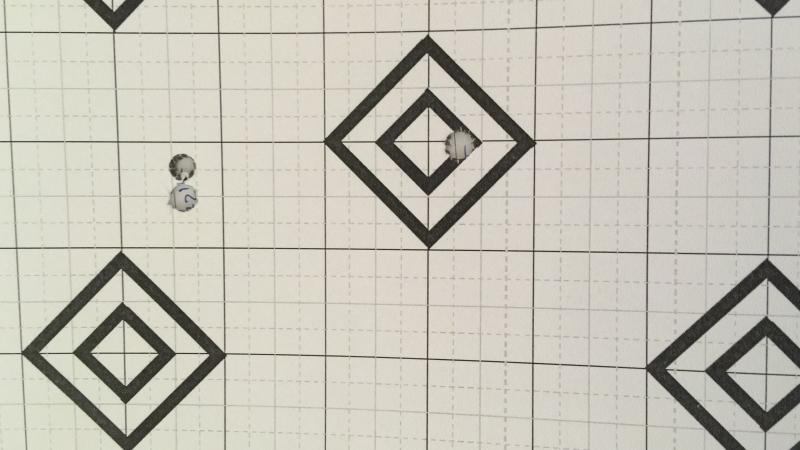Dos tiros él y uno yo a escasos 80 mts apoyados en una piedra plana usando mochila. Blanco casero, un folio DinA 4 con una cruz pintada para poner la Cruz del visor en ella.Los tres cosidos uno al otro sin hacer cacahuetes, unos 4 CMS altos sin ninguna deriva, así que está perfecto, falló el indio.