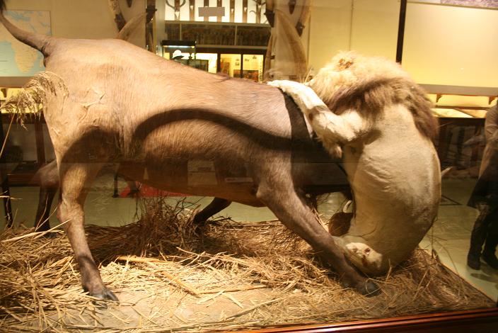 El taxidermista hizo un trabajo impresionante, las expresión del búfalo es brutal y los detalles de cada centímetro de animal son magníficas teniendo en cuenta que hacer una escena así no creo yo que haya muchos taxidermistas(que los hay, y de mejores también pero pocos.) que sean capaces de hacerla a los niveles de esta.