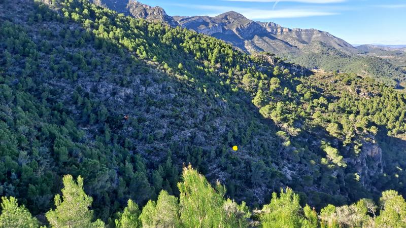 Mando la foto con la vista que tenía en el puesto y el punto amarillo es donde lo he matado.