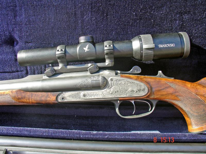 Yo también quiero mostrar mi Blaser. En este caso un expréss S2 safari con 2 cañones. Uno 9,3x74 que se adapta muy bien a nuestras monterías y lleva un swarowski z6 de 1-6x24 y un segundo sin visor del 470 NE. El primero me ha dado muchas satisfacciones en monterías, el segundo cañon solo lo he utilizado con un búfalo de agua de unos 900 kg en Argentina. Espero que pronto con su primo africano.