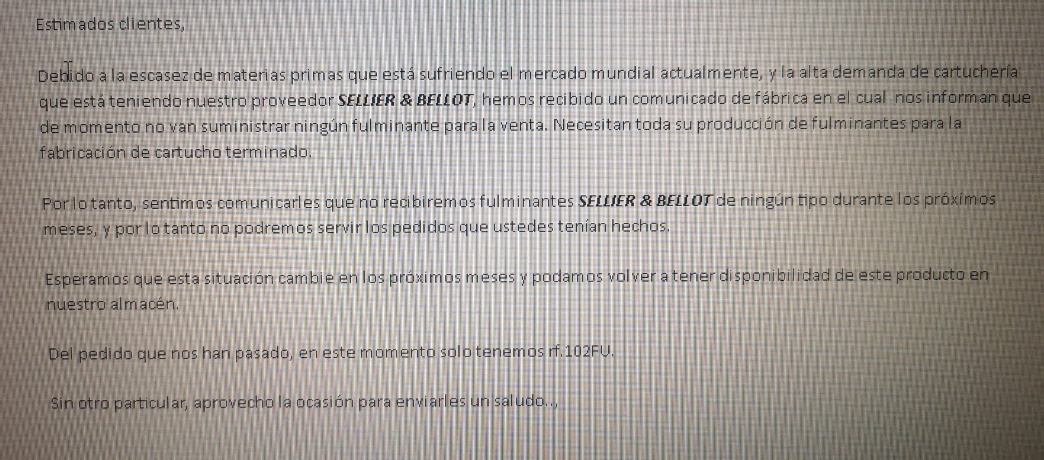 Que digan que no pueden encontrar materia prima, o que se la venden, pero eso de que la produccion de cartucheria se vende en USA, no me lo creo.