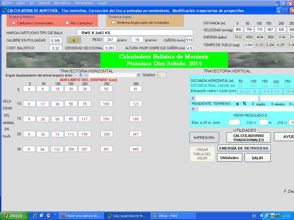 Mañana pongo las medidas, pero la velocidad tendrá que ser la que dice la munición en su caja, emérito cual la balística de montería?