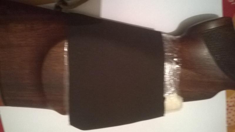 Una la tenia puesta en una carabina M1 Carbine, pues le puse visor y me hacia falta levantar bastante la cara. Despues le quite el visor, y ya no me hace falta en esa arma, por lo que se la he puesto a una carabina de aire comprimido con visor, y me va muy bien el encare, ya que tambien tengo que tener la cara bastante levantada. La otra igual, en otra carabina de aire.
